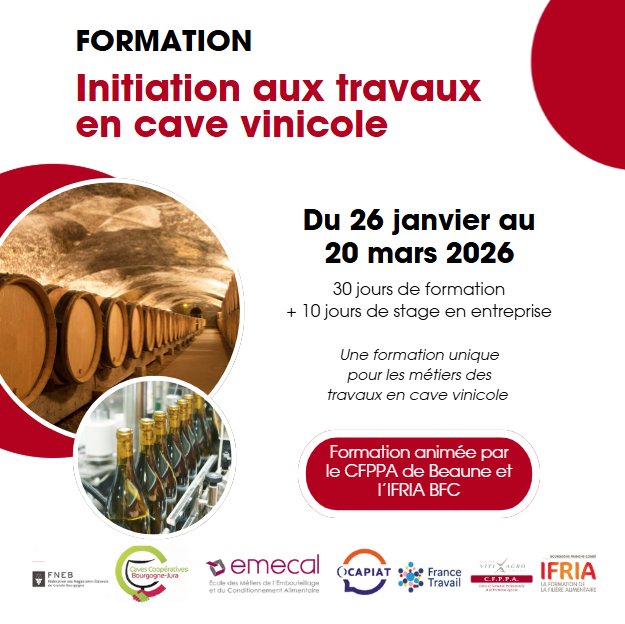 Nouvelle POEI 2026 : Initiation aux travaux en cave vinicole25/11/2025L’IFRIA BFC lance, en partenariat avec France Travail, Ocapiat et le CFPPA de …